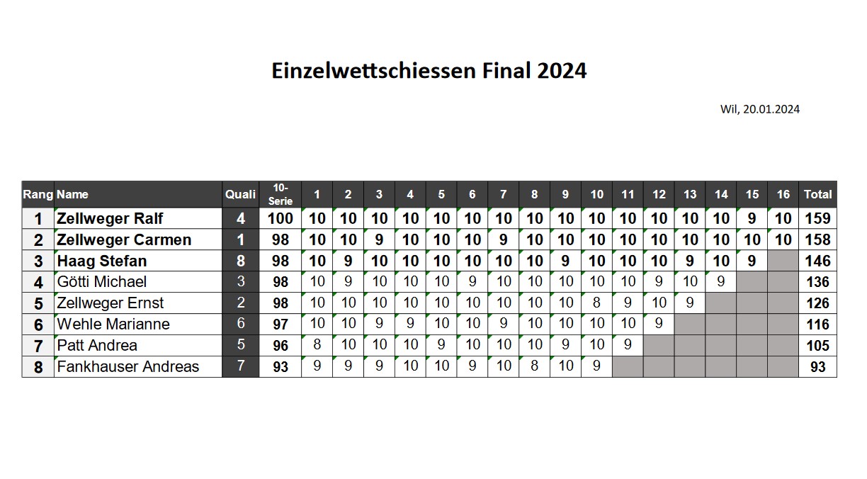 Schlussranglisten ASV Goldach Saison 2024